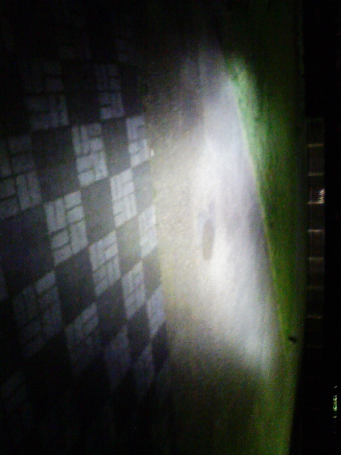 違いは一目瞭然です。HIDは金具付で、手で上下角度を調整可能なので、ハイビームっぽく照射も出来て真っ暗闇での視認性は抜群です。防眩の為、光軸は少し左にずらしています。